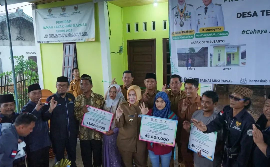 ICNEWS – MUSI RAWAS – Bupati Musi Rawas, Hj. Ratna Machmud, meresmikan sekaligus menyerahkan secara simbolis kunci Rumah Layak Huni Program Baznas Kolaborasi Tahun 2025 kepada para mustahik, bertempat di Desa D Tegal Rejo, Kecamatan Tugumulyo, Kabupaten Musi Rawas. Selasa (14/10/2025).