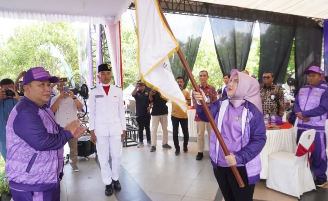 Bupati Musi Rawas Hj Ratna Machmud mengucapkan “Selamat ” kepada Kontingen PORPROV XV Sumatera Selatan yang akan bertanding di Kabupaten Musi Banyuasin.