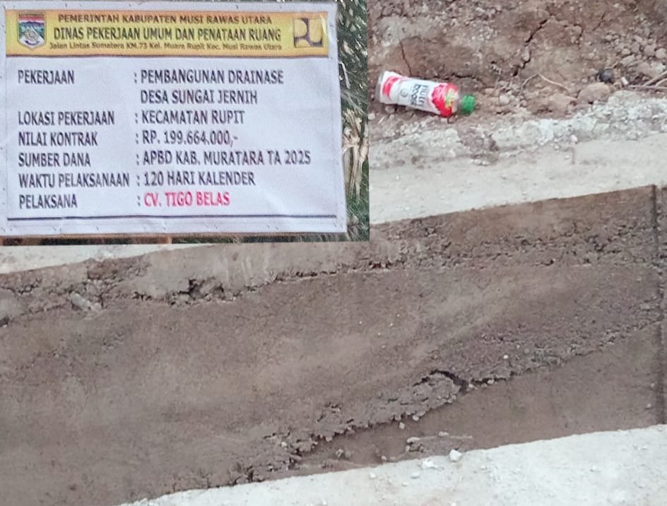 ICNEWS – Pemerintah Kabupaten Musi Rawas Utara melalui Dinas Pekerjaan Umum dan Penataan Ruang (PUPR) mulai melaksanakan proyek pembangunan drainase di Desa Sungai Jernih, Kecamatan Rupit.senin (3/11/2025)