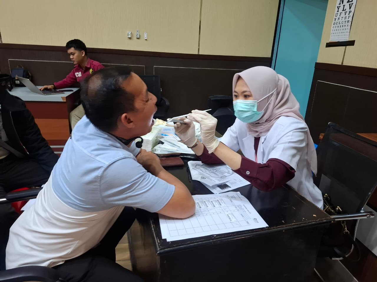 Pemeriksaan meliputi tes mata, jantung, gigi, cek darah, cek urin, serta pengecekan kesehatan umum lainnya. Seluruh rangkaian dilakukan oleh tim medis dari Bidang Kesehatan Polda Sumatera Selatan yang memastikan kesehatan anggota dicek secara menyeluruh.