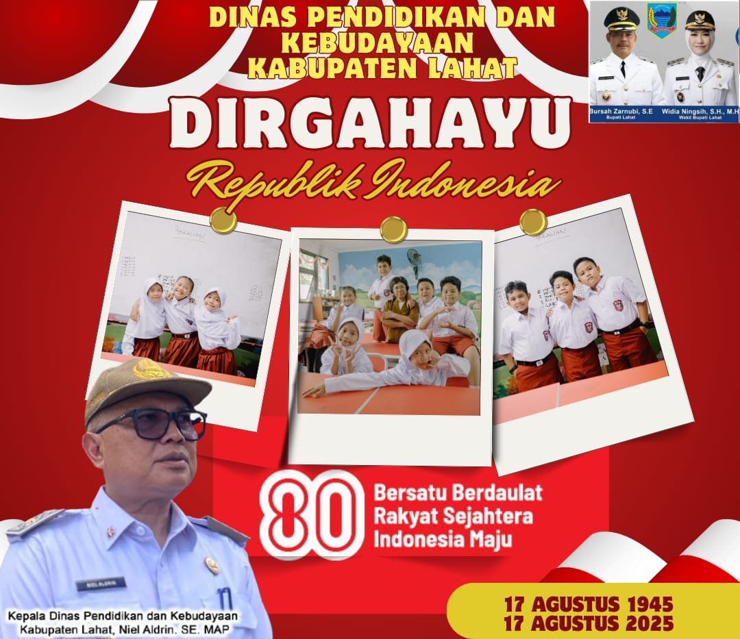Beranda Update Dinas Pendidikan dan Kebudayaan Kabupaten Lahat Mengucapkan Dirgahayu RI ke-80 UpdateDinas Pendidikan dan Kebudayaan Kabupaten Lahat Mengucapkan Dirgahayu RI ke-80Admin1 min baca17/08/202518/08/202528×Dinas Pendidikan dan Kebudayaan Kabupaten Lahat Mengucapkan Dirgahayu RI ke-80Sebarkan artikel ini Niel Aldrin, SE,. MAP Kepala Dinas Pendidikan dan Kebudayaan Kabupaten Lahat Post Views: 28Pos TerkaitUpdateWakil Bupati Musi Rawas, H. Suprayitno Menjadi Inspektur Upacara Peringatan Hari Santri NasionalUpdateSatu Tahun Pemerintahan Prabowo – Gibran: Arah Baru, Capaian Nyata, dan Tantangan Yang MengemukaUpdateWakil Wali Kota Hj Bertha Hadiri Pelantikan Pengurus Daerah Komunitas Ibu Cerdas IndonesiaUpdateTanah Serelo Lahat Bergerak Menuju Daerah Berdaya Saing di Bawah Kepemimpinan Bupati BZ dan Wakil Bupati WINUpdatePerkuat Sinergi Jaga Kamtibmas, Kapolres Pagar Alam Silaturahmi Dengan Forum PonpesUpdateDugaan Penyimpangan Pelaksanaan Pembangunan Prasarana Utilitas Permukiman Desa Pajar Bulan
