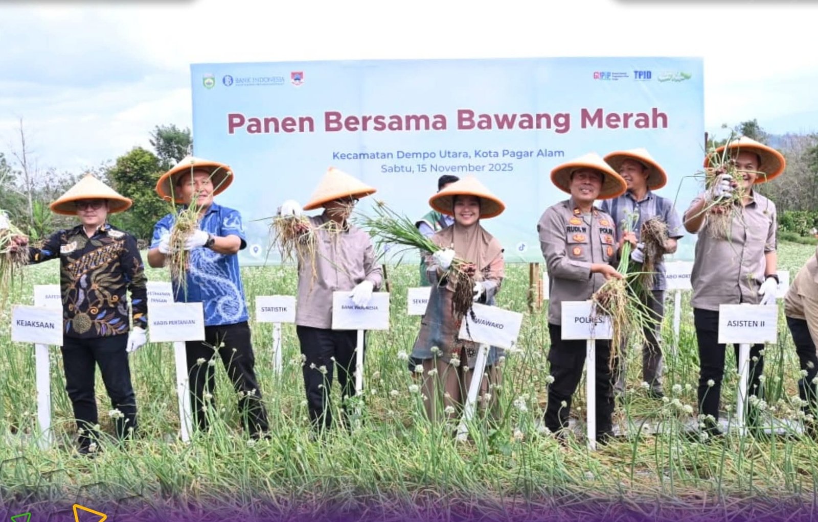 ICNEWS – PAGAR ALAM – Dalam rangka mendukung swasembada pangan sekaligus pengendalian inflasi daerah, Pemerintah Kota (Pemkot) Pagar Alam bersama Bank Indonesia (BI) Perwakilan Sumatera Selatan (Sumsel) dan Kelompok Tani Air Lawu, melaksanakan panen raya Bawang Merah, di Gunung Agung Pauh, Kelurahan Agung Lawangan, Kecamatan Dempo Utara, Sabtu (15/11/2025).