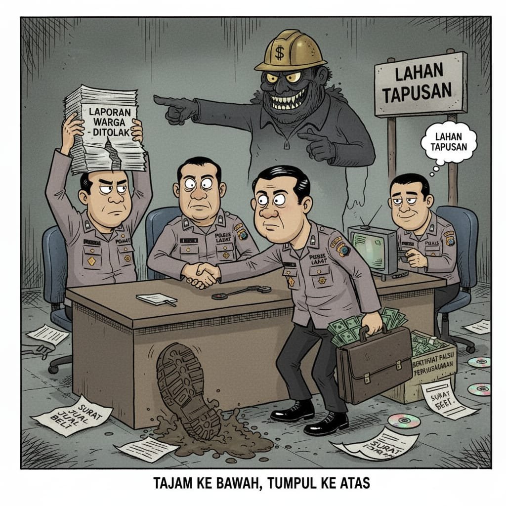 ICNEWS -​LAHAT – Upaya hukum yang ditempuh oleh pemilik lahan di Area Tapusan, Desa Tanjung Telang, Kecamatan Merapi Barat, Kabupaten Lahat, Sumatera Selatan, harus menemui jalan buntu. Laporan mereka terkait dugaan penyerobotan dan perusakan lahan di wilayah tersebut ditolak oleh Unit Pidana Khusus (PIDSUS) Polres Lahat, dengan alasan bukti surat jual beli yang dilampirkan dianggap tidak memiliki kekuatan hukum yang memadai.