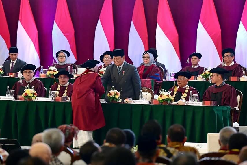 ICNEWS – JAKARTA – Presiden Prabowo Subianto menghadiri Sidang Senat Terbuka dalam rangka Pengukuhan Mahasiswa Baru Sarjana dan Magister Tahun Ajaran 2025/2026 serta Wisuda Sarjana sekaligus Dies Natalis Universitas Kebangsaan Republik Indonesia (UKRI) Tahun 2025. Acara berlangsung dengan khidmat di Trans Convention Centre, Kota Bandung, Provinsi Jawa Barat, Sabtu (18/10/2025).