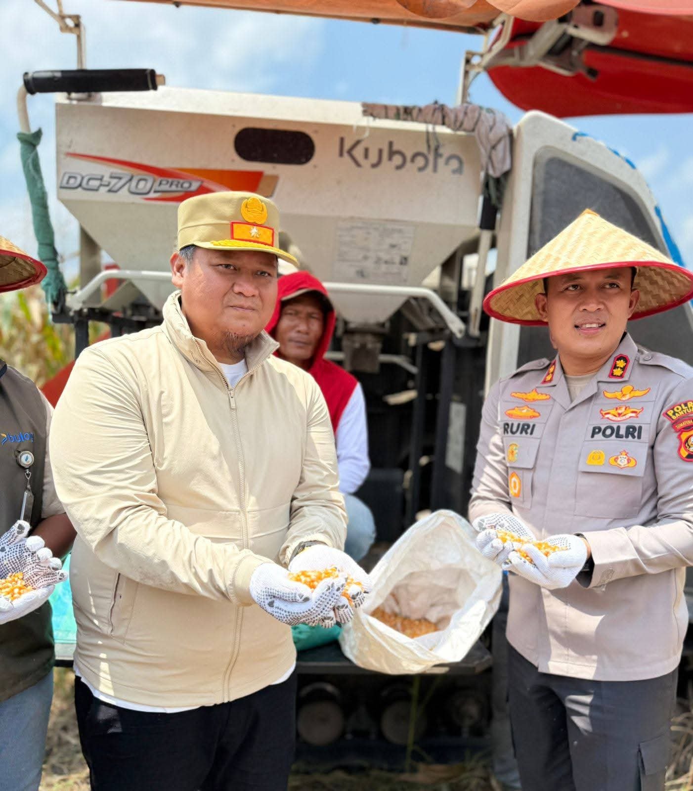 Icnews – Tanjung Lago — Dalam rangka gugus tugas Polri mendukung ketahanan pangan di Kabupaten Banyuasin, Mewakili Bupati Banyuasin, Sekretaris Daerah Banyuasin, Ir. Erwin Ibrahim, ST., MT., MM., MBA., IPU., ASEAN.Eng bersama Kapolres Banyuasin, AKBP. Ruri Praswoto, SH., S.IK., M.IK melakukan Panen Jagung Serentak Kuartal III di Desa Sukatani, Kecamatan Tanjung Lago, Sabtu (27/09/2025).