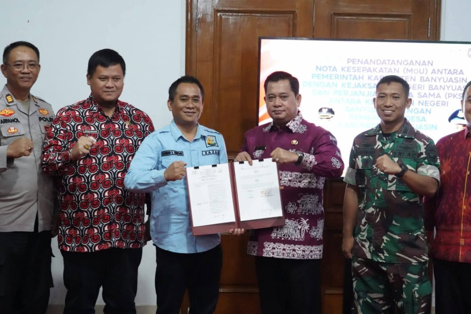 Proses penandatanganan dilaksanakan langsung di Guest House Rumah Dinas Bupati, Kamis (7/8), dan dihadiri oleh Sekda Banyuasin, Ir. Erwin Ibrahim, S.T., M.M., M.B.A., IPU., ASEAN Eng., Kepala Kejaksaan Negeri Kabupaten Banyuasin, Raymund Hasdianto Sitohang, S.H., M.H., Dandim O430 Banyuasin, Letkol Arh Agus Prijambodo, S.Sos., M.I.P., Kapolres Banyuasin yang diwakili Kasikum AKP Arfanol Amri dan berbagai tamu undangan.