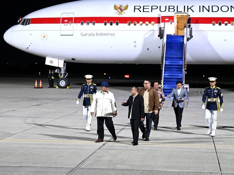 ICNEWS – JAKARTA – Presiden Prabowo Subianto tiba di Tanah Air, Kamis (13/11/2025), sekitar pukul 01.30 WIB, usai melaksanakan kunjungan kenegaraan ke Australia. Pesawat Garuda Indonesia-1 yang membawa Kepala Negara dan rombongan terbatas sebelumnya lepas landas dari Bandar Udara Sydney Kingsford Smith, Australia, Rabu (12/11/2025) malam waktu setempat.