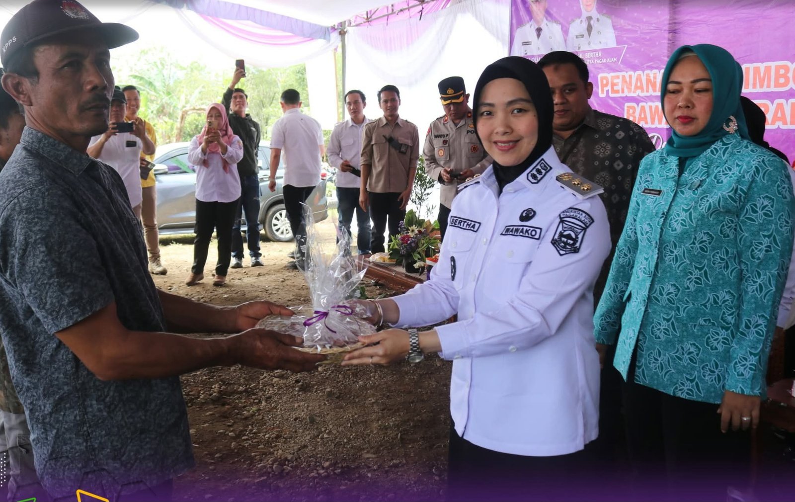 ICNEWS – PAGAR ALAM – Wakil Wali Kota Pagar Alam Hj Bertha bersama Ketua TP PKK Pagar Alam Hera Parianti Ludi, secara simbolis memberikan bantuan 2 ton bibit bawang merah varietas batu ijo dan varietas bima brebes, serta 4 unit cultivator kepada 4 kelompok petani, Rabu (20/08/2025),