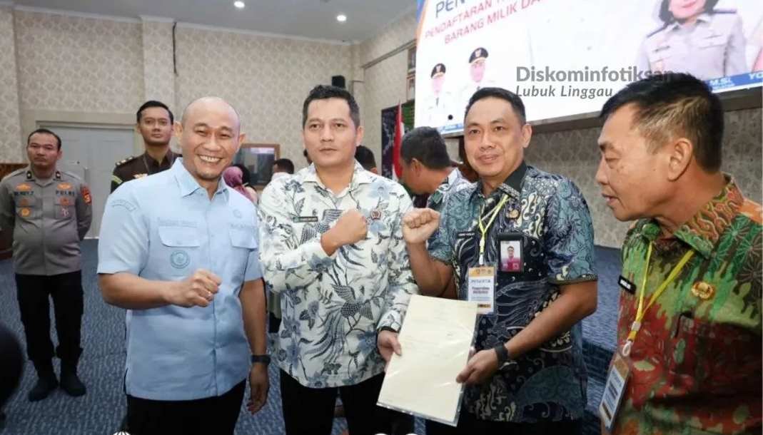 ICNEWS – LUBUK LINGGAU – Wali Kota Lubuk Linggau, H. Rachmat Hidayat, menyerahkan secara simbolis sertifikat Pendaftaran Tanah Sistematis Lengkap (PTSL) Barang Milik Negara (BMD) dan tanah wakaf kepada masyarakat. Kegiatan tersebut berlangsung di Cinema Hall Bukit Sulap, Pemerintah Kota Lubuk Linggau, Kamis (29/1/2026).